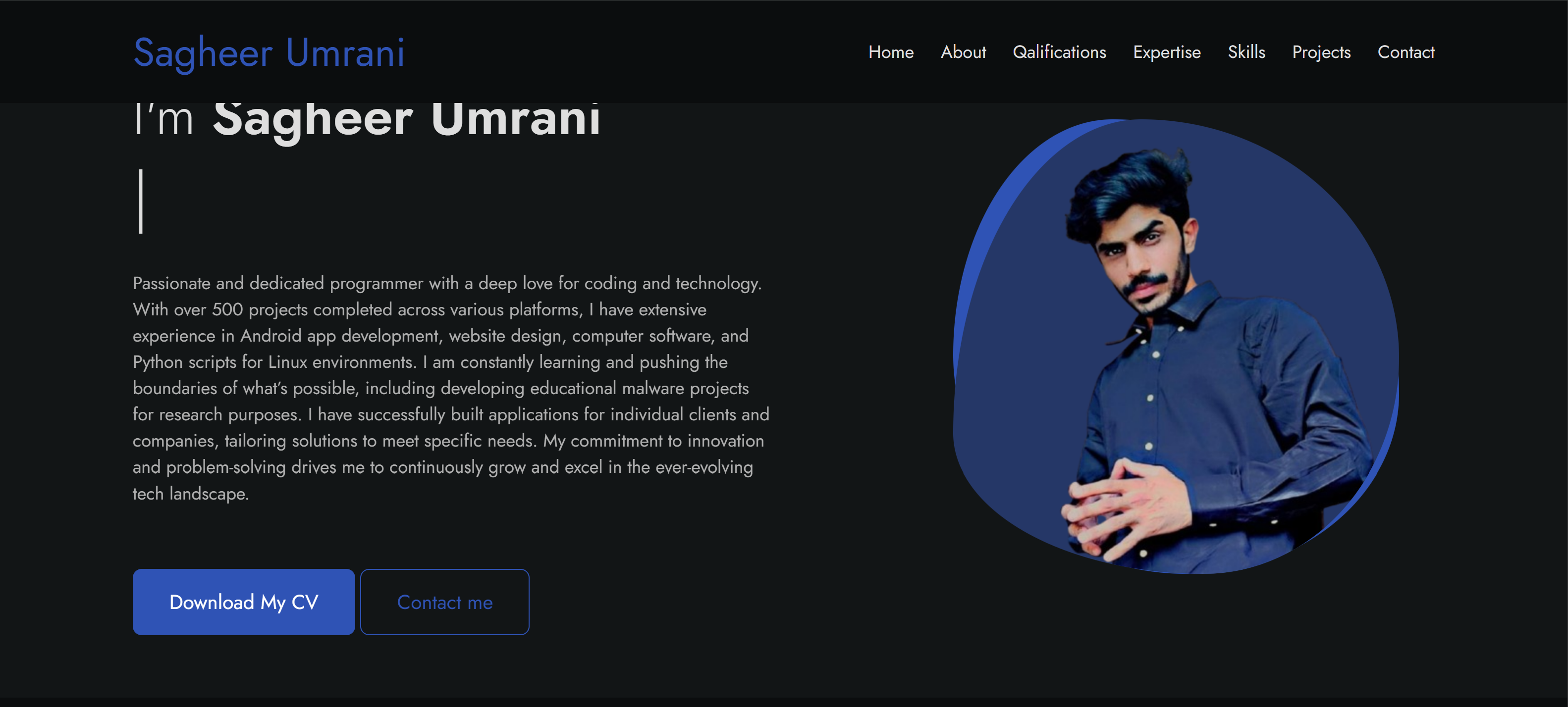 Sleek and animated CV portfolio landing page with a smooth UI design view